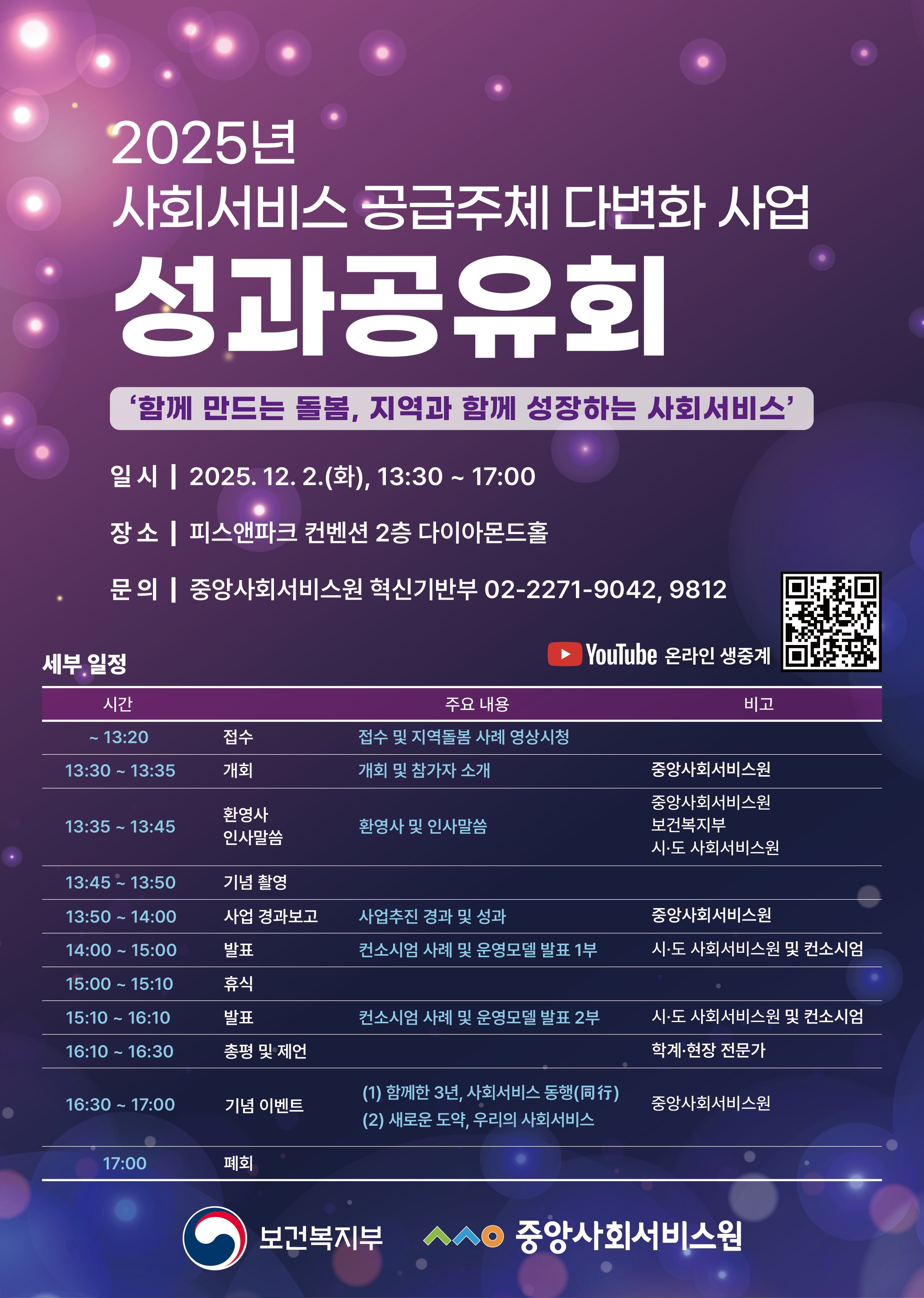 ▶ '2025년 사회서비스 공급주체 다변화 사업 성과공유회' 유튜브 생중계 링크