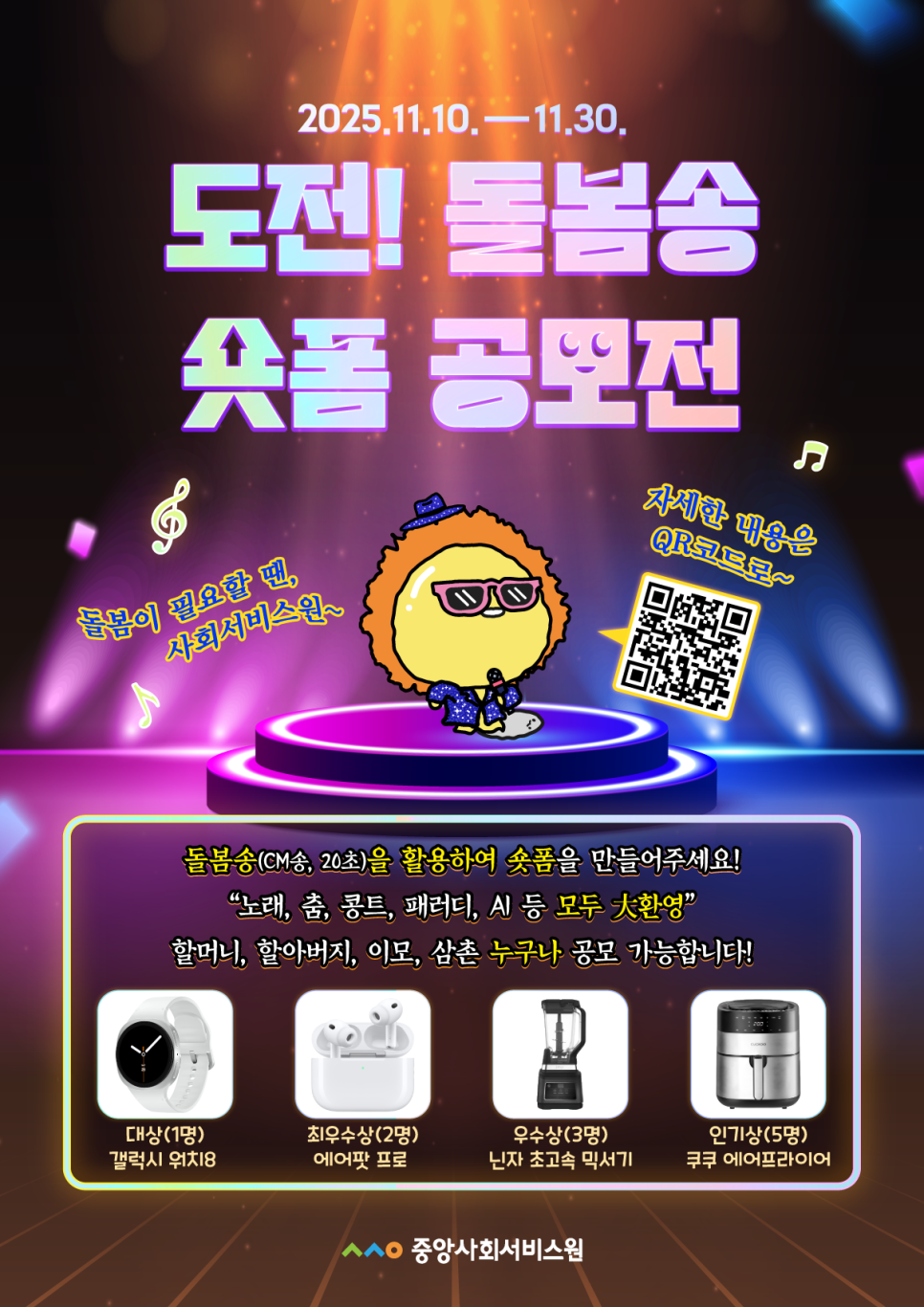 2025년 중앙사회서비스원 CM송을 활용한 숏폼 공모전에 지원하세요!